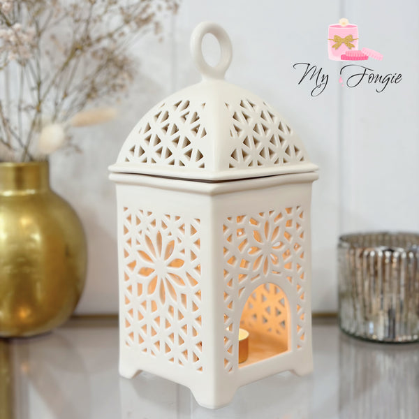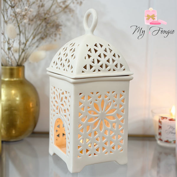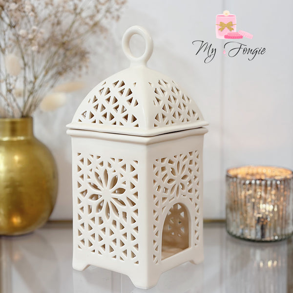 Véritable pièce de caractère, ce brûleur lanterne au style oriental chic sublime votre intérieur grâce à ses motifs délicatement ajourés, diffusant une lumière précieuse et enveloppante, pour une ambiance raffinée, douce et intemporelle.