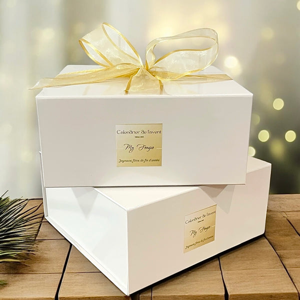 Son design épuré — coffret blanc avec une fermeture aimantée orné d’un ruban doré — en fait un véritable écrin de luxe, à garder précieusement. Une fois les cases ouvertes, ta boîte devient un coffret réutilisable, parfait pour ranger tes petits trésors !